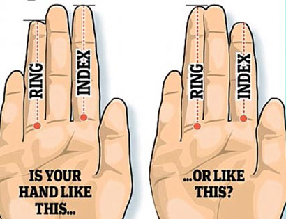 tay đeo nhẫn càng dài so với ngón tay trỏ (ảnh phải), anh ta sở hữu các